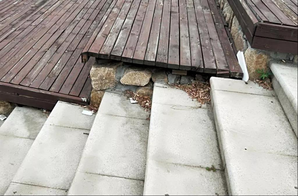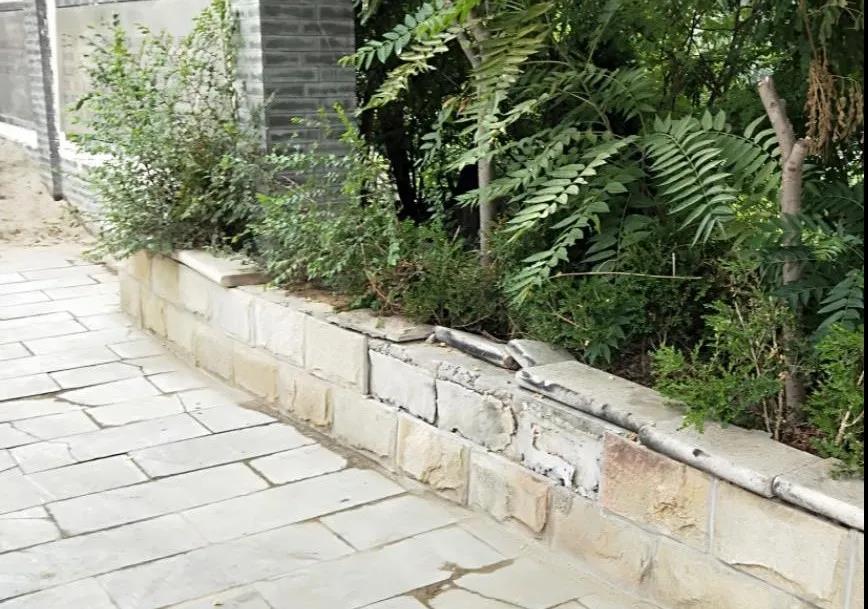 有一些景墙、花池装潢家具板零落或裂开的现象。