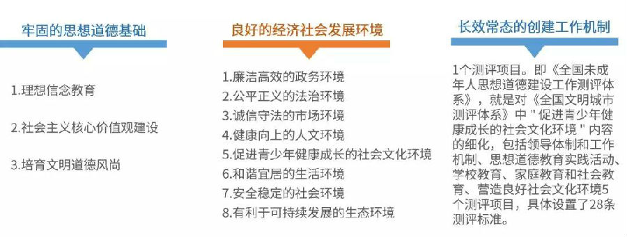 《天下文明都会测评体系》包含安稳的思惟品德根本、杰出的经济社会成长情况、长效常态的建立使命机制3大板块,共有12个测评名目、88项测评内容、180条测评规范和40个负面清单,配套了《测评体系操纵手册》。